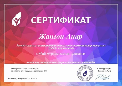 Математикалық интелектуалдық сайыс 2019 жыл