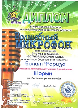 «Волшебный микрафон» өнер байқауында 3-6 жас 2019 жыл